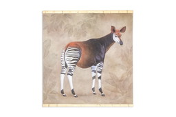 Geschilderd canvas met een Okapi op een grijze achtergrond. Eigentijds.