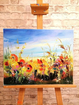 Kleurig schilderij met klaprozen