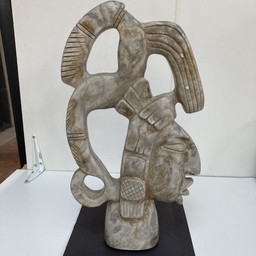 Gebeeldhouwd stenen hoofd in precolumbiaanse stijl, werk uit de 20e eeuw