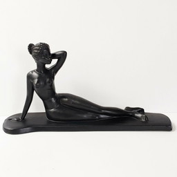 Sculpture moderniste en bronze patiné – tête stylisée inspirée de Modigliani sur socle marbre noir – 25 cm