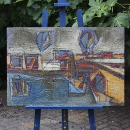 1 Acryl schilderij met deels collage op doek