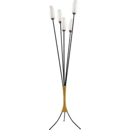Vintage teakhouten vloerlamp met gelakt ijzer en messing voet, Frankrijk 1950