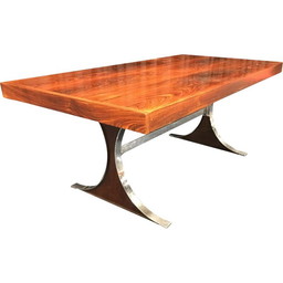 Vierkante vintage salontafel, chroom en rookglas, 1970