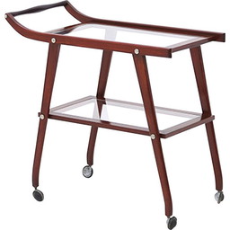 Vintage houten trolley met glazen legplanken, jaren 1950