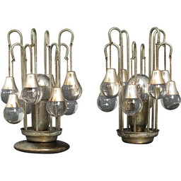 Paar vintage wandlampen in messing en glas van Bruno Gatta voor Stilnovo, Italië 1960