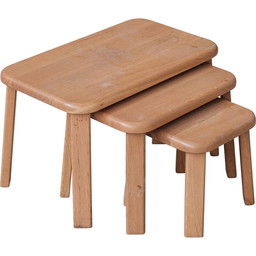 Set van 3 vintage blonde eikenhouten nesttafels, België 1970