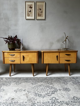 2x Vintage Olijfhouten Gebogen Fauteuils