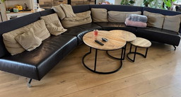 Stevige lederen XL zitzak met poef, na 2000