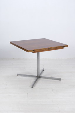 Eettafel met RVS poten en zwartleren 6x stoelen