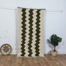Crème & olijfgroen gestreept Azilal-kleed / Azilal-kleed crème met olijfgroene strepen (180×100 cm)Crème & olijfgroen gestreept Azilal-kleed / Azilal-kleed crème met olijfgroene strepen (180×100 cm)
