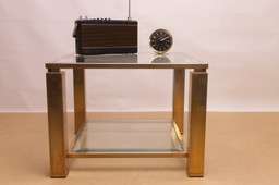 Vierkante Belgochrom 23 kt vergulde glazen bijzettafel met twee verdiepingen