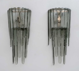 Paar Carlo Nason gebeeldhouwde Murano glazen Cascade wandlampen voor Mazzega, jaren 60