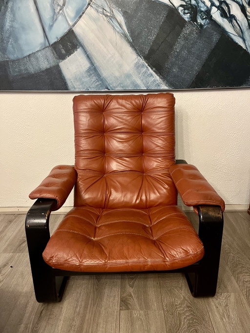 Coja lounge stoel - cognac - 60’s design - echt leer- design by Sven Ellekaer