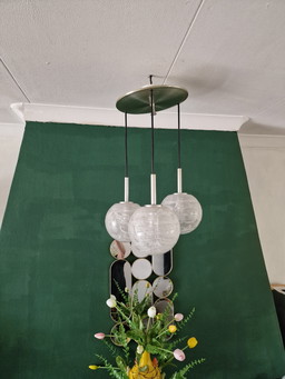 Vintage Space Age hanglamp, glas en verchroomd metaal, toegeschreven aan Doria Leuchten (jaren 60)