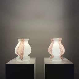 Paar wit en bruin glazen paddestoel tafellampen van Doria Leuchten, 1970