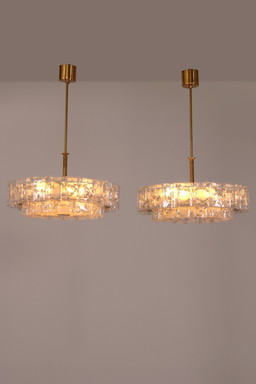 "Pair Of Doria Leuchten Mid-Century Brass & Crystal Chandeliers, 1960S"