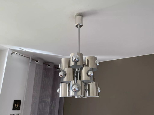 Grote Chromen Vintage Space Age Gaetano Sciolari hanglamp (70s) Itiliaans design (kroonluchter) bol lampen