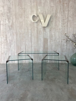 Galotti & Radice 3 Delig Mimiset Nest Tafels Gehard Glas Met Messing Afwerking