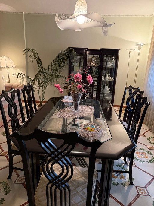 Zeldzame diningset, Galaxy tafel en stoelen, met exclusieve bekleding, ontworpen door Umberto Asnago - Giorgetti. 1980S
