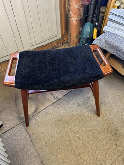 Vintage Deense voetenbank in de stijl van Hans J. Wegner - jaren 1960, opnieuw bekleed