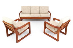 Teakhouten bank uit de jaren 60/70, 3 zitplaatsen en 2 fauteuils. Easy Chair, Holstebro Møbelfabrik A/S.