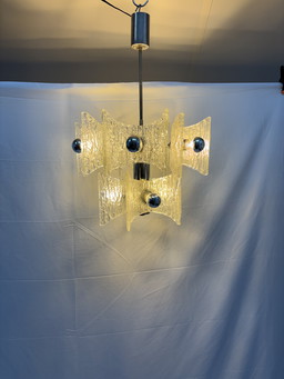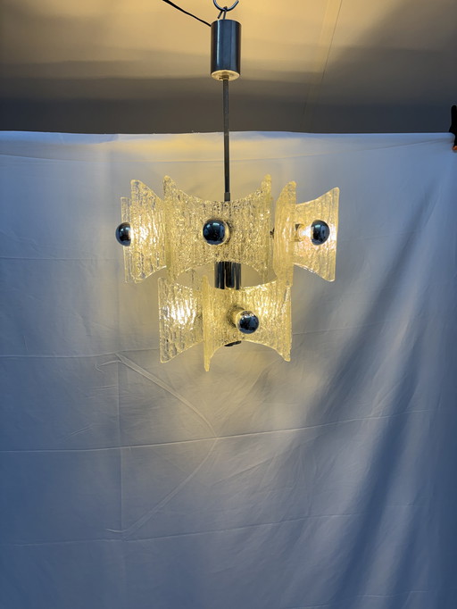 Vintage iceglass hanglamp, Kaiser Leuchten ‘70