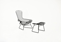 Knoll International Vogelstoel met voetenbankje van Harry Bertoia