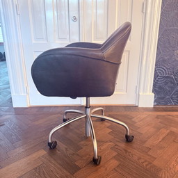 Label kuipstoeltje – leer – draaibaar – op wielen