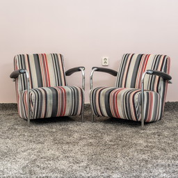2 Leolux Papageno Fauteuils Rood Stof Design Stoel Zwart