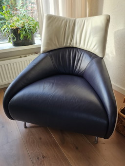 Leolux Fauteuil rond leer zwart blauw