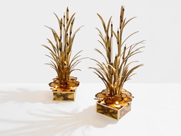 Maison Jansen Paar messing riet waterlelies vloerlampen 1970