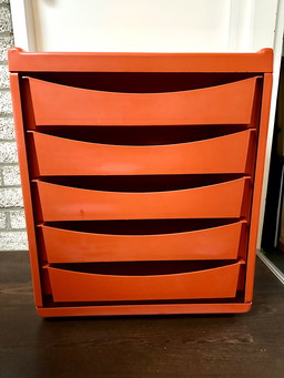 Meurop vintage ladenkast 5 laden Space Age oranje