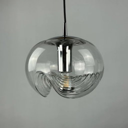 Hanglamp uit de jaren 70 met een grote, gekorrelde glazen bol.