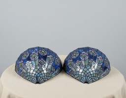 2x Vintage Tiffany wandlampen pauwenpatroon
