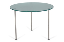 Italiaanse keramische tafel met originele glazen voet van Tonelli Design.