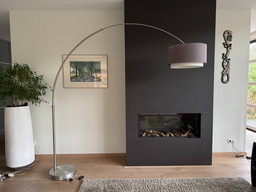 RVS Booglamp met dubbele lampenkap taupe-wit