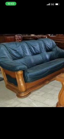 1x 2 seat leather couch in wooden frame