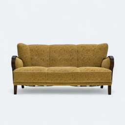 1960 3-zits Deense sofa, groen meubelvelours, essenhouten poten