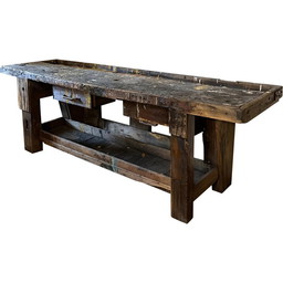 Vintage schilderwerkbank met 2 ladenVintage schilderwerkbank met 2 laden