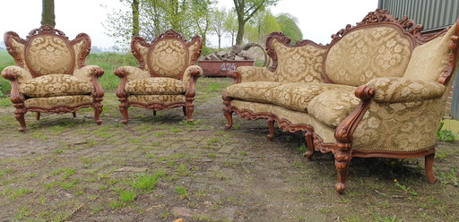 ANTIEK LOUIS XV BANKSTEL bank met 2 fauteuils