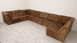 Leolux “Volare” Bank van Jan Armgardt met gewatteerde lederen kussens, als nieuw