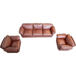 Vintage woonkamer set in oranje leer van Mario Marenco voor Arflex, 1970