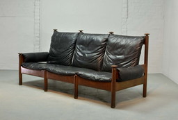 Rolf Benz - 3 seater - black leather - mid century