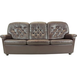Vintage driezits leren bank, Tsjecho-Slowakije 1970