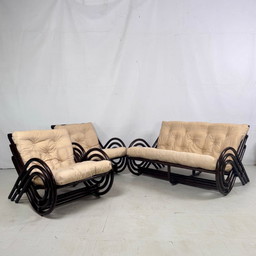Franse rotan woonkamerset, jaren 70Franse rotan woonkamerset, jaren 70