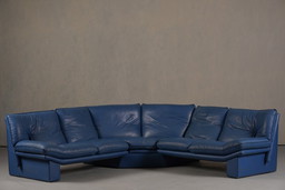 6 Poltrona Frau eetkamerstoelen Liz, kobaltblauw leder en kersen kleurig Beuken onderstel