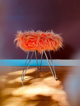 Fluffy karmozijnrode haarspeld krukFluffy karmozijnrode haarspeld kruk