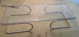 Fritz Hansen glazen eettafel met verchroomde tafelpotenFritz Hansen glazen eettafel met verchroomde tafelpoten