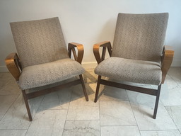 Vintage fauteuils in teakbeits en stof voor Swarzędz, 1960