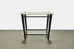 Vintage bijzettafel in messing en glas in lood van Maison Baguès, Frankrijk 1960